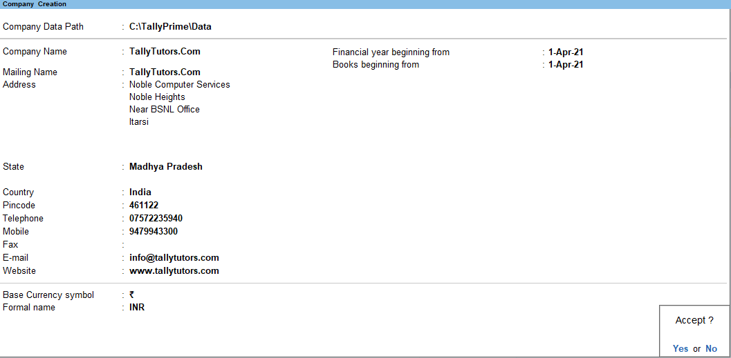 एक बार कंपनी सही तरीके से बन जाए, तो आगे की सारी entries और reports आसानी से तैयार की जा सकती हैं।